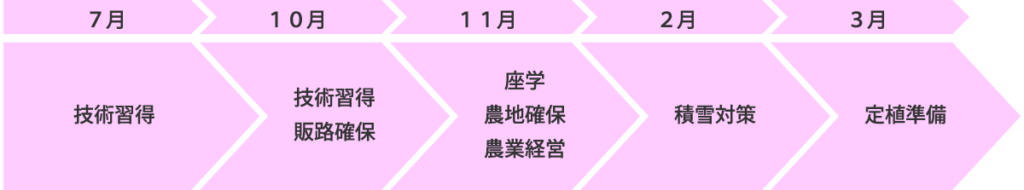 【研修品目】りんご高密植栽培、有望作物ハウス栽培(シャインマスカット他)の年間を通じた栽培技術習得、農業経営の開始・継続、農地確保、販路確保 など